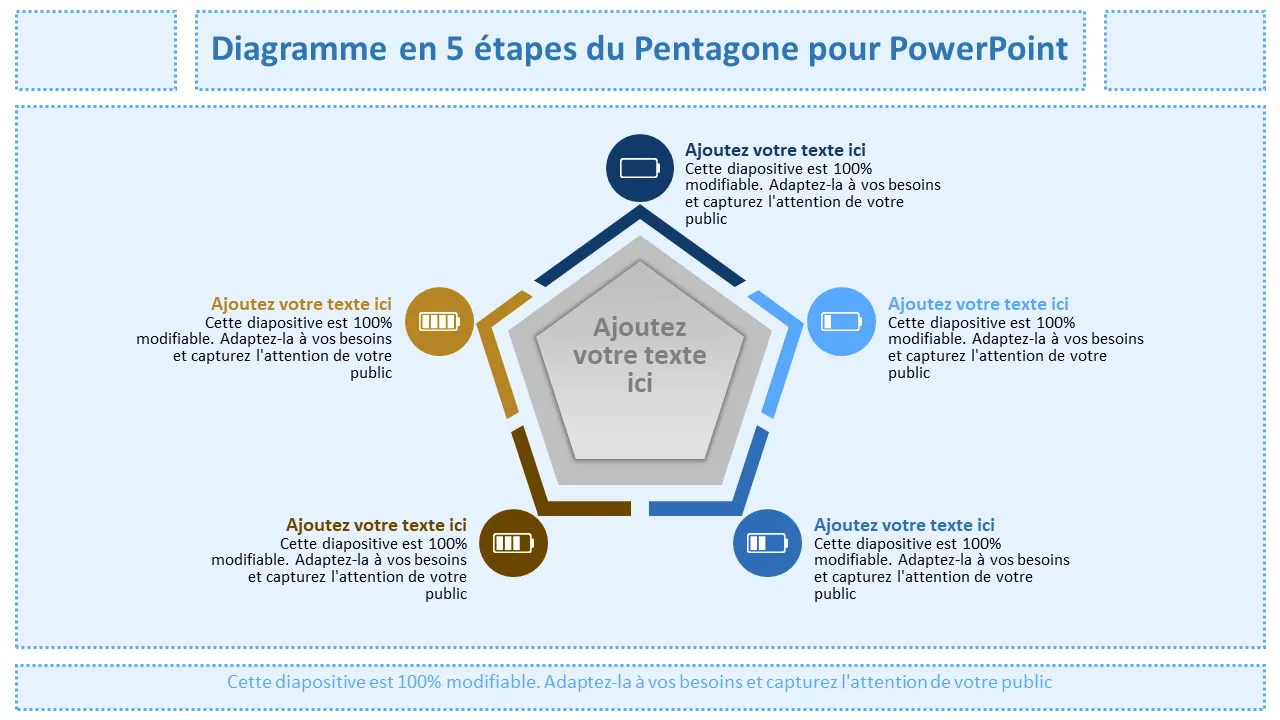 Diagramme Powerpoint des formes du Pentagone en 5 étapes