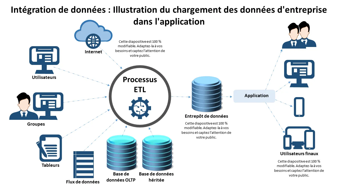Intégration de données montrant la charge des données d'entreprise avec l'application et les utilisateurs finaux